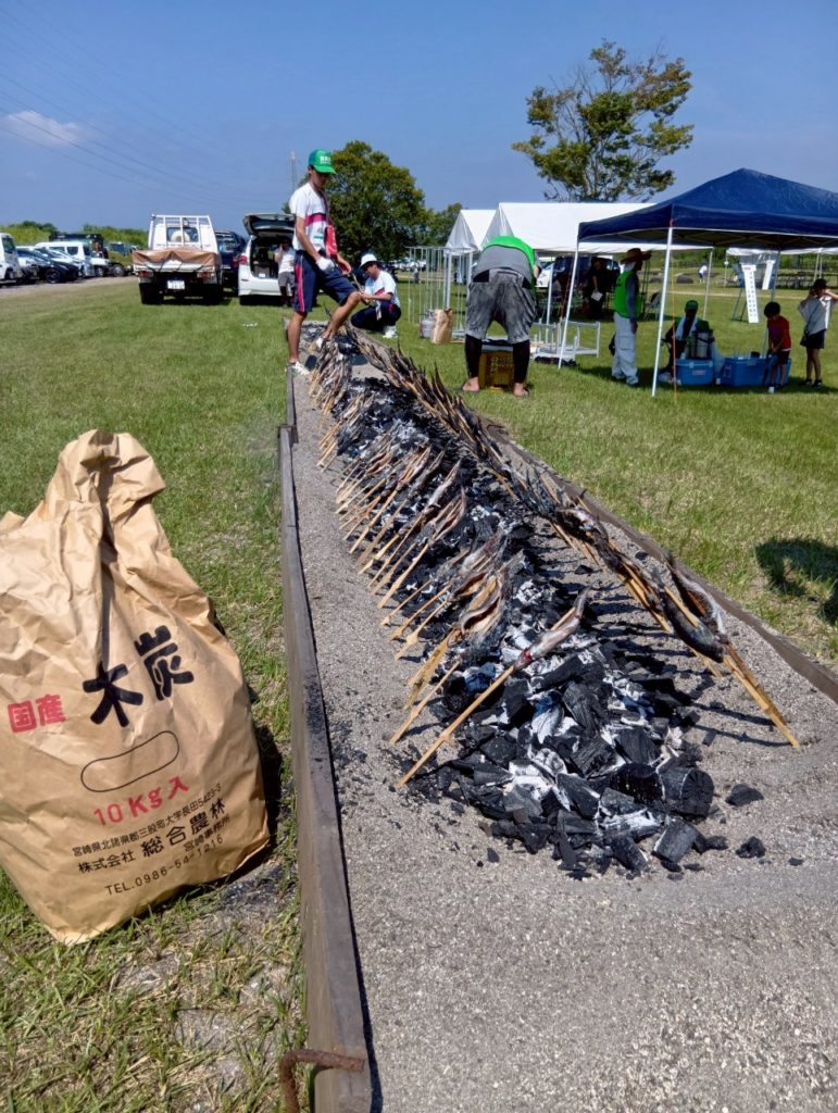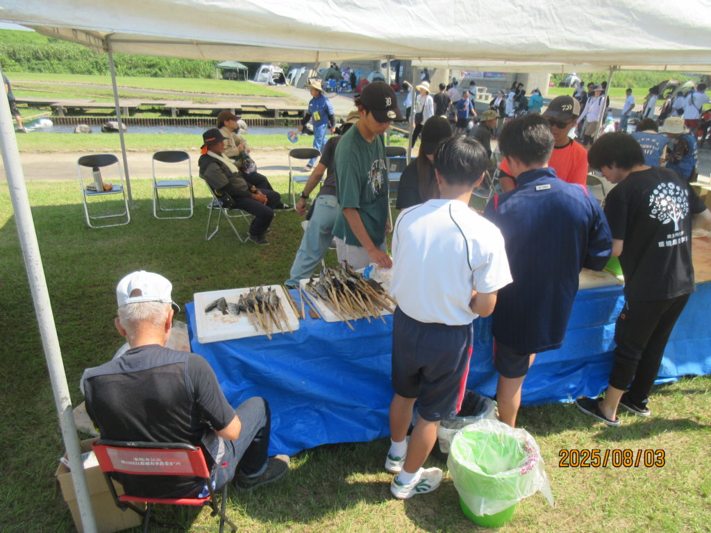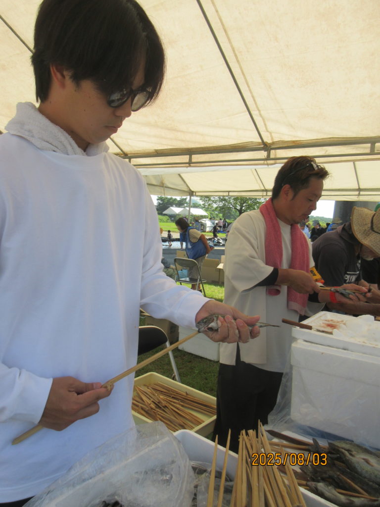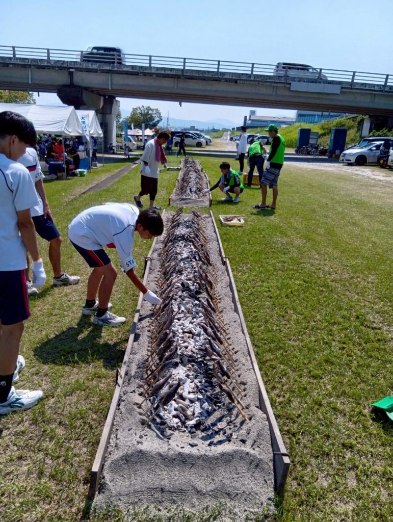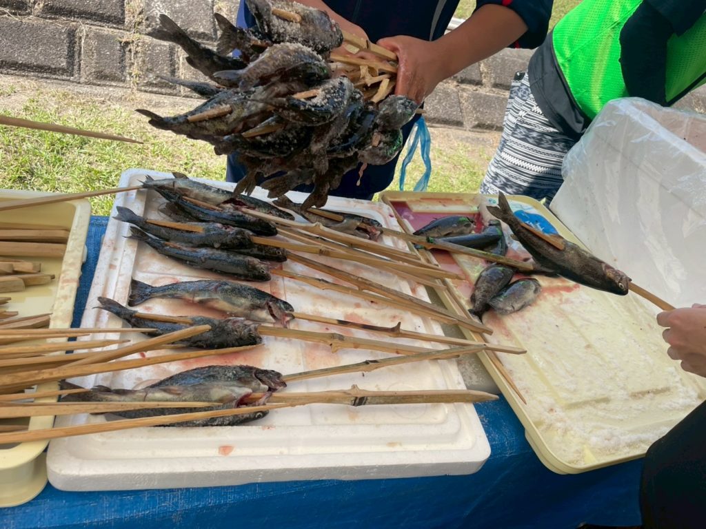 そして、都城漁協さんと沖水中学校の皆さんが、河原で焼き上げたニジマスの塩焼きや🐟「こどもサミット大会」の為に、ご協力頂いた『出店コーナー』で昼食を取りました。