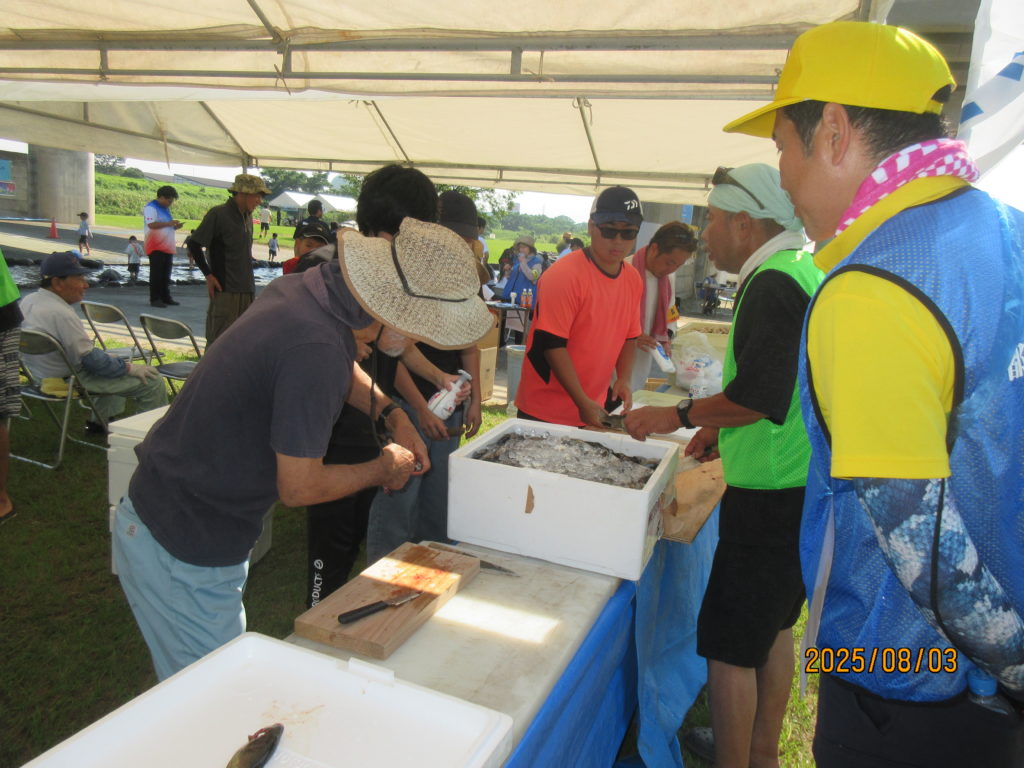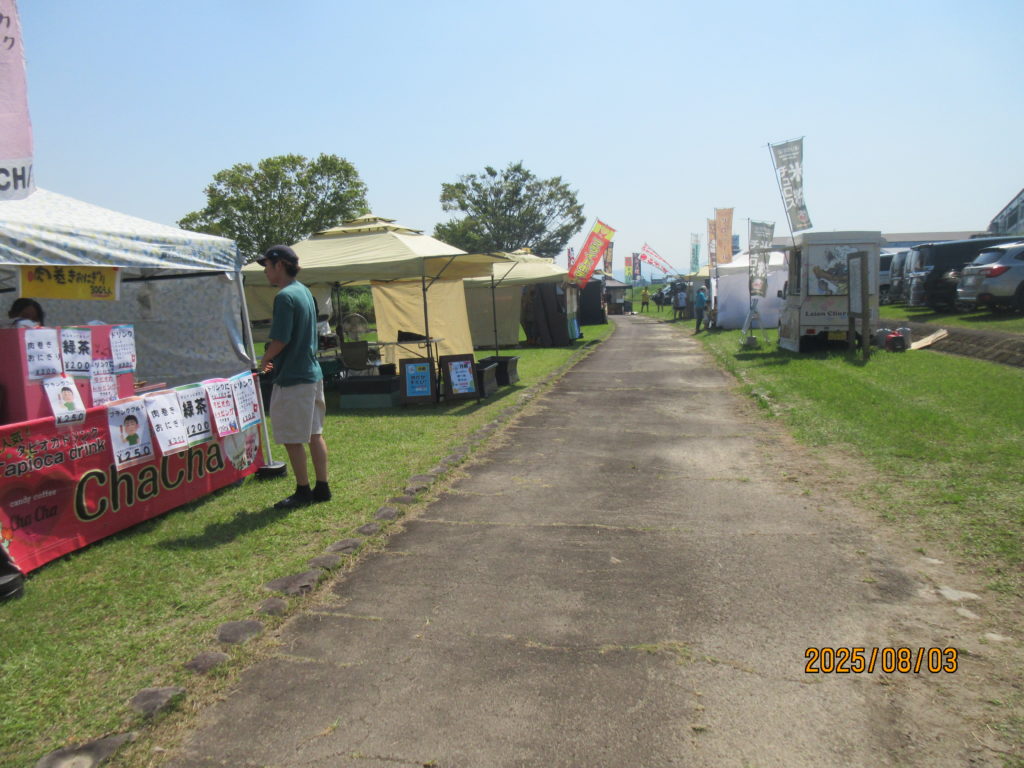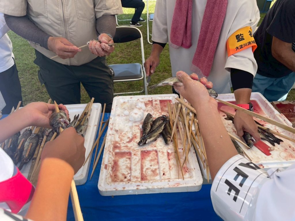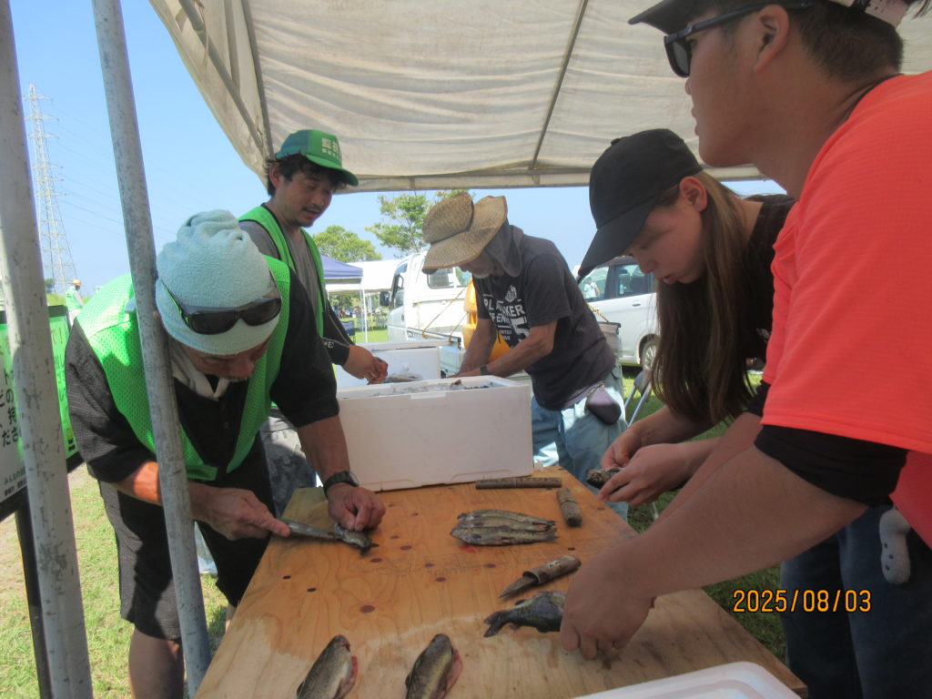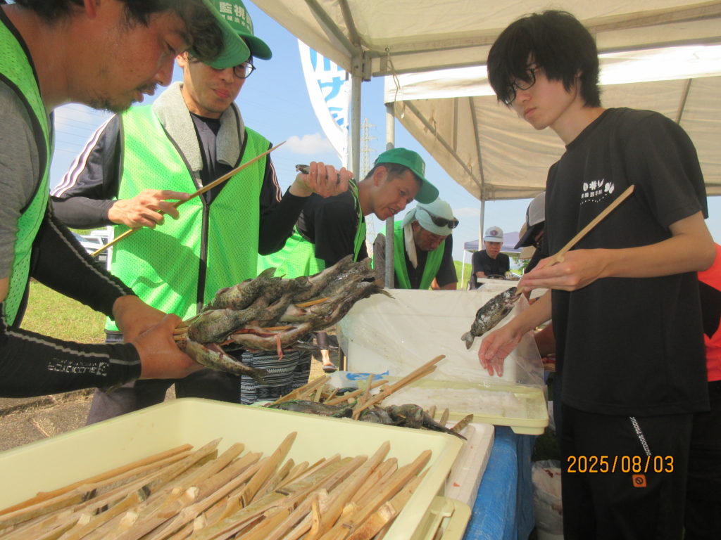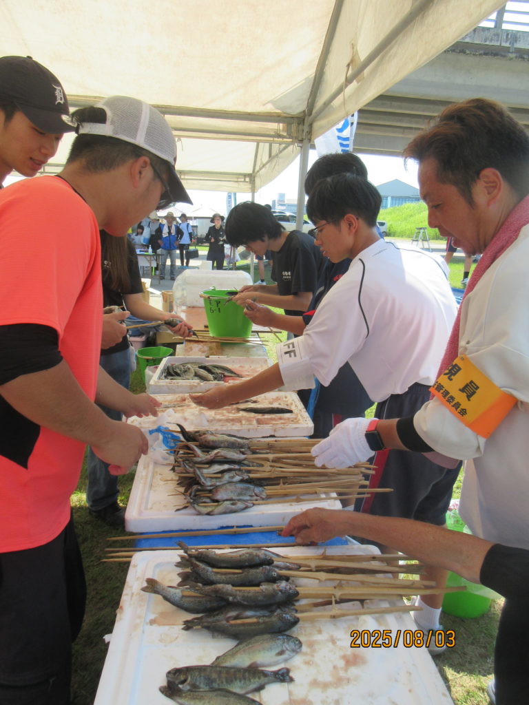 そして、都城漁協さんと沖水中学校の皆さんが、河原で焼き上げたニジマスの塩焼きや🐟「こどもサミット大会」の為に、ご協力頂いた『出店コーナー』で昼食を取りました。