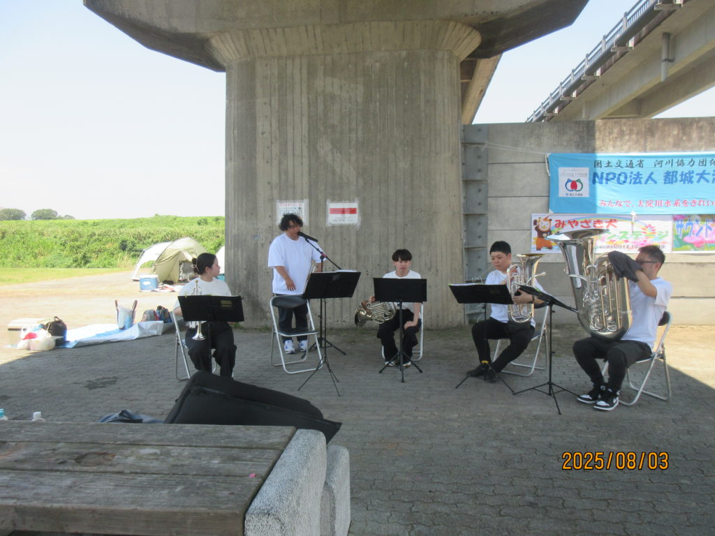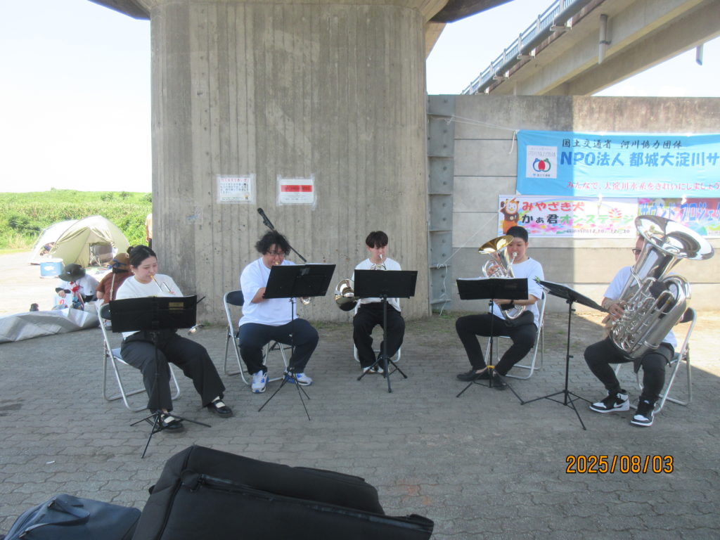 お待ちかね!?アトラクションでは、宮崎県の“マスコットキャラクター”みやざき犬「かぁ君」と県内で活動されている、管楽器アンサンブル「サウンドプロジェクトM2」の皆さんの演奏に♪酔いしれました。(^^♪