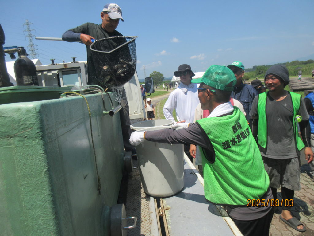 さぁ~!3つのブースを回ったら💦お楽しみニジマス🐟摑み取りです。