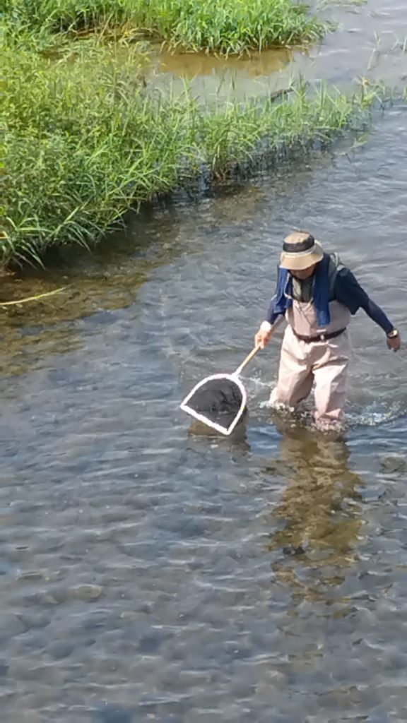 過去の県の調査時にもミミズを使った餌釣りで釣獲できており、技術や道具の面では、タモ網、餌釣りが良い      ように思われます。・・・岡崎主幹 談