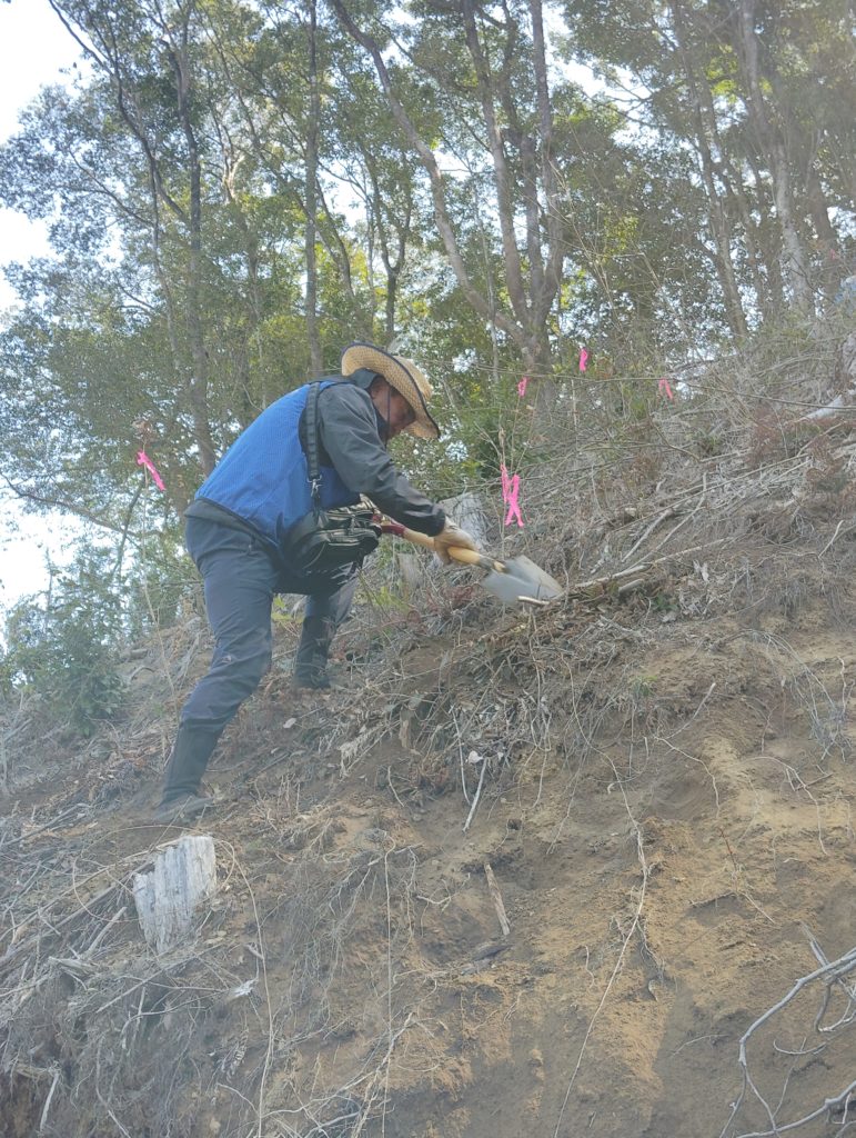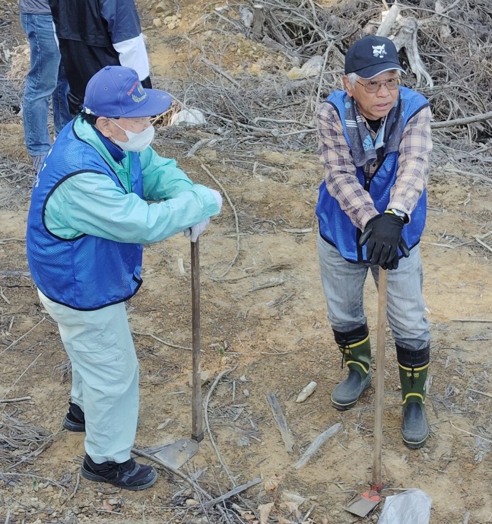 今回の植樹会場は、それは!それは!!じょじょな💦勾配のキツい所でしたので、御年95歳くらいの?大峰さんを担ぎ上げるのが大変でした😅💦