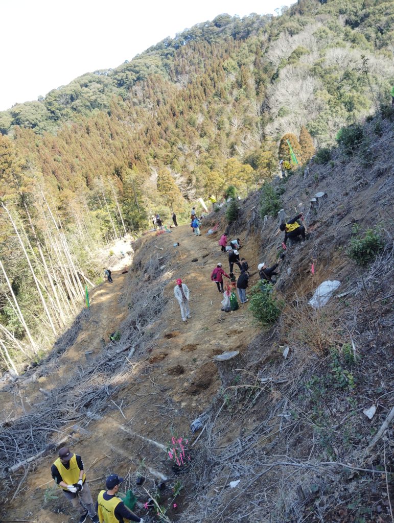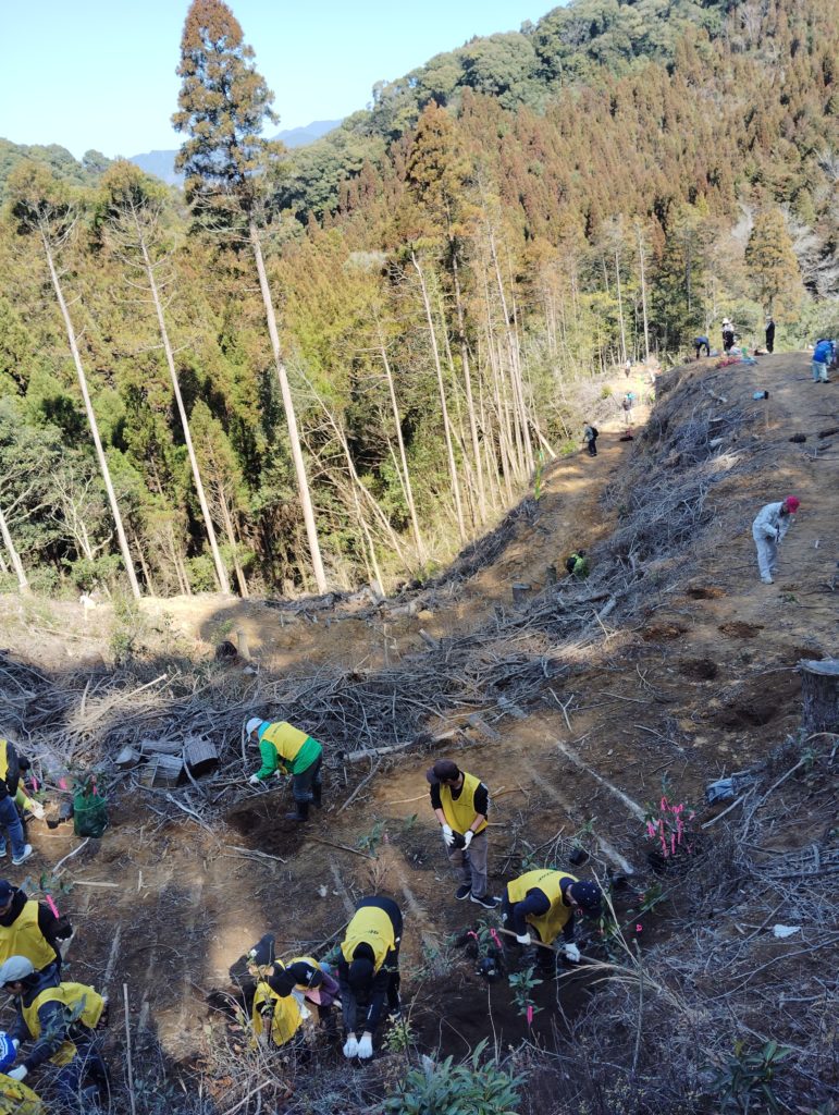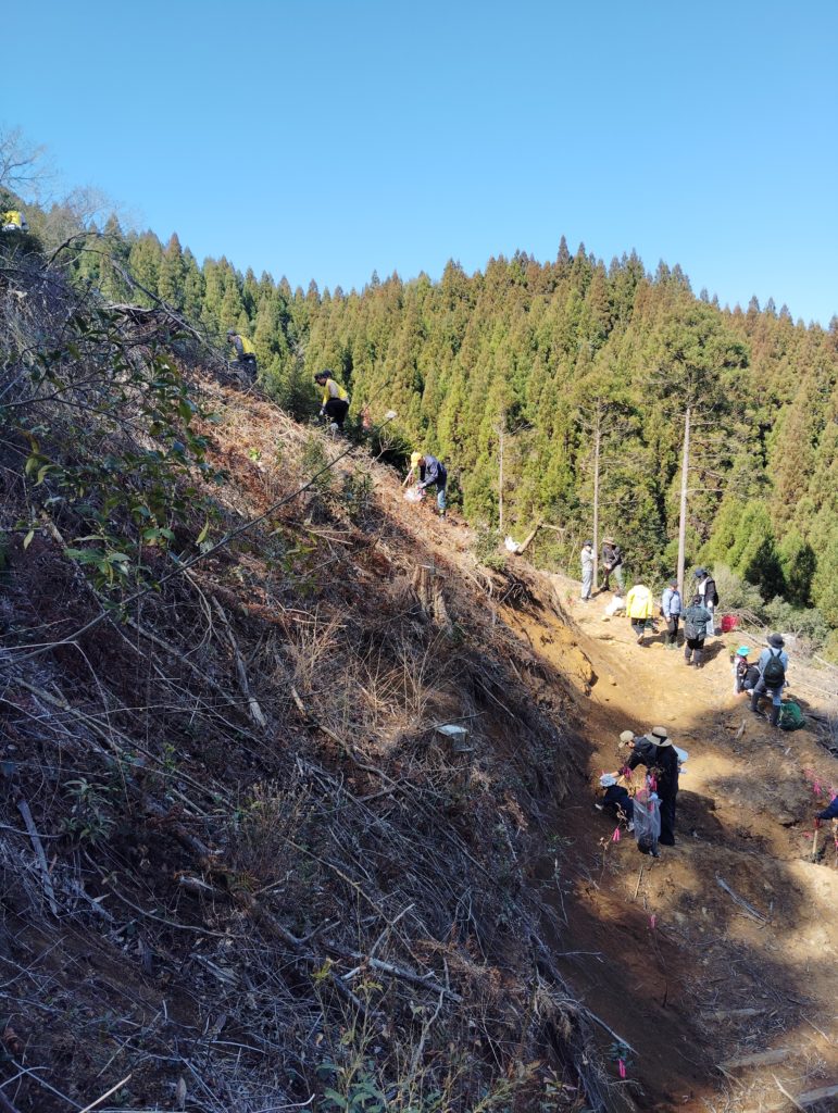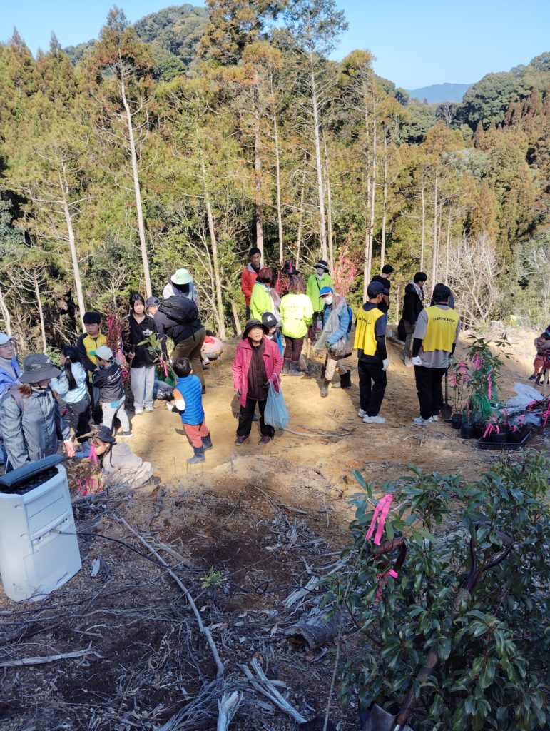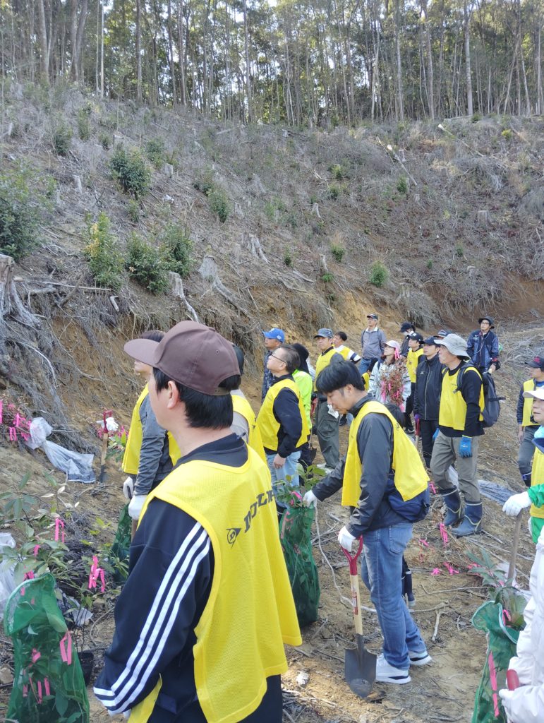 皆さん頑張って❣1.2haの国有林に2000本超えのドングリの植樹をしました。私の元勤務していた、住友ゴム宮崎工場の方々も工場長始め26名くらいのご参加で、盛会に終えて良かったと思います。